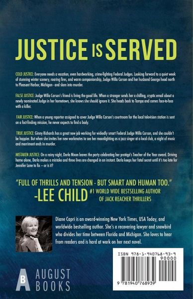 Exciting Short Read Collection! Judge Willa Carson returns in these chilling stories from New York Times and USA Today Bestselling Author Diane Capri! "Full of thrills and tension - but smart and human too." Lee Child, #1 World Wide Bestselling Author of Jack Reacher Thrillers SHORT READS HUNT FOR JUSTICE THRILLER SERIES COLLECTION "Intricate and Ingenious. Make some coffee. You'll read all night." -- Lee Child Justice is Served contains four exciting Hunt for Justice short reads from USA Today and New York Times Bestselling Author Diane Capri Includes the USA Today Bestselling Cold Justice! THIS COLLECTION CONTAINS 4 #1 Bestselling Short Reads and Bonuses: Cold Justice False Justice Fair Justice True Justice Bonuses: Two Diane Capri Essays about the Hunt for Justice Series Cold Justice - Everyone needs a vacation, even hardworking, crime-fighting Federal Judges. Looking forward to a quiet week of stunning winter scenery, roaring fires, and warm companionship, Judge Willa Carson and her husband George head north to Pleasant Harbor, Michigan - and slam into murder. A car stranded in the road. A corpse slumped in the front seat. A gunshot wound to left temple. The scene is surreal, the execution ruthless, the victim far from innocent. Local authorities want this case put away fast because it's bad for their tourism business. Willa sees what the cops don't, and she is not about to play along to get along. False Justice - Judge Willa Carson's friend Ursula Westfield is living the good life. Her career as a broadcast journalist is on fire, she finally found a good man to come home to, and her new Manhattan apartment is the stuff of dreams. When a stranger sends her a chilling but cryptic email about a newly nominated Judge in her hometown, she knows she should ignore it. Secret sources armed with conspiracy theories were nothing but trouble. Still, she can't seem to shake the feeling that there's something amiss about Judge Aaron Michaels. Driven by an insatiable quest for truth and a desire to do the right thing, she heads back to Tampa and comes face-to-face with a killer. Fair Justice - When a young reporter assigned to cover Judge Willa Carson's courtroom for the local television station is sent on a fact-finding mission, he never expects to find a body. Residents of a small Florida town are suffering from a strange, debilitating illness. A whistleblower claims the local carpet mill is engaged in dumping toxic chemicals into the water supply. Uncovering the truth may cost the reporter his life, unless Willa Carson can save him. True Justice - Ginny Richards has a great new job working for wickedly smart Federal Judge Willa Carson, and she couldn't be happier. After a rough patch and an ugly break up, she's finally making new friends and her career in on the upswing. But when she invites her new workmates to see her moonlighting as a jazz singer at a local club, she never expects that a night of music and merriment will end in murder. Grab your copy now and start reading today!