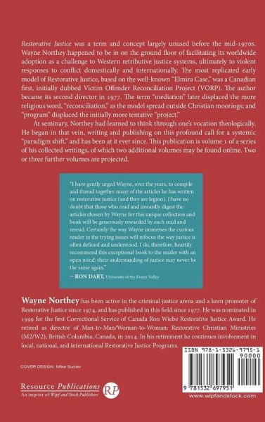 Restorative Justice was a term and concept largely unused before the mid-1970s. Wayne Northey happened to be in on the ground floor of facilitating its worldwide adoption as a challenge to Western retributive justice systems, ultimately to violent responses to conflict domestically and internationally. The most replicated early model of Restorative Justice, based on the well-known ""Elmira Case,"" was a Canadian first, initially dubbed Victim Offender Reconciliation Project (VORP). The author became its second director in 1977. The term ""mediation"" later displaced the more religious word, ""reconciliation,"" as the model spread outside Christian moorings; and ""program"" displaced the initially more tentative ""project."" At seminary, Northey had learned to think through one's vocation theologically. He began in that vein, writing and publishing on this profound call for a systemic ""paradigm shift,"" and has been at it ever since. This publication is volume 1 of a series of his collected writings, of which two additional volumes may be found online. Two or three further volumes are projected.