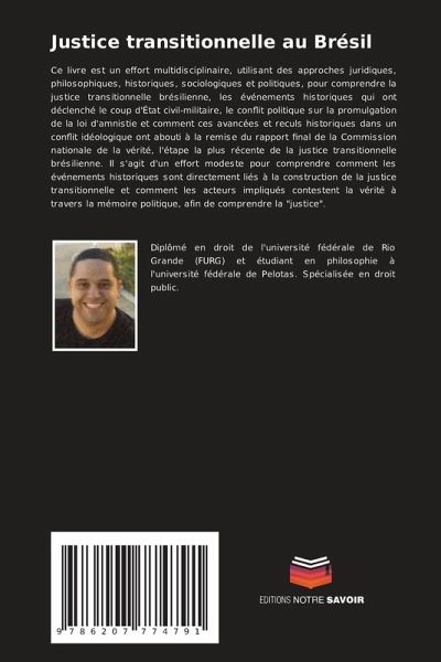 Ce livre est un effort multidisciplinaire, utilisant des approches juridiques, philosophiques, historiques, sociologiques et politiques, pour comprendre la justice transitionnelle brésilienne, les événements historiques qui ont déclenché le coup d'État civil-militaire, le conflit politique sur la promulgation de la loi d'amnistie et comment ces avancées et reculs historiques dans un conflit idéologique ont abouti à la remise du rapport final de la Commission nationale de la vérité, l'étape la plus récente de la justice transitionnelle brésilienne. Il s'agit d'un effort modeste pour comprendre comment les événements historiques sont directement liés à la construction de la justice transitionnelle et comment les acteurs impliqués contestent la vérité à travers la mémoire politique, afin de comprendre la "justice".