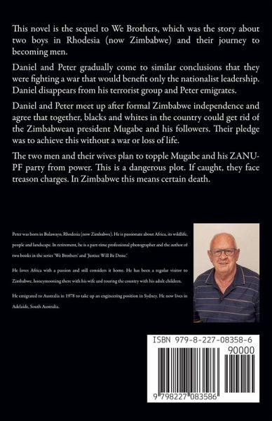 This novel is the sequel to We Brothers, which was the story about two boys in Rhodesia (now Zimbabwe) and their journey to becoming men. Daniel and Peter gradually come to similar conclusions that they were fighting a war that would benefit only the nationalist leadership. Daniel disappears from his terrorist group and Peter emigrates. Daniel and Peter meet up after formal Zimbabwe independence and agree that together, blacks and whites in the country could get rid of the Zimbabwean president Mugabe and his followers. Their pledge was to achieve this without a war or loss of life. The two men and their wives plan to topple Mugabe and his ZANU-PF party from power. This is a dangerous plot. If caught, they face treason charges. In Zimbabwe this means certain death.