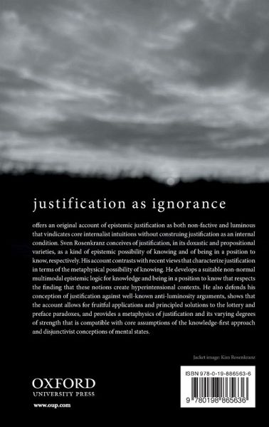 Justification as Ignorance offers an original account of epistemic justification as both non-factive and luminous, vindicating core internalist intuitions without construing justification as an internal condition knowable by reflection alone.