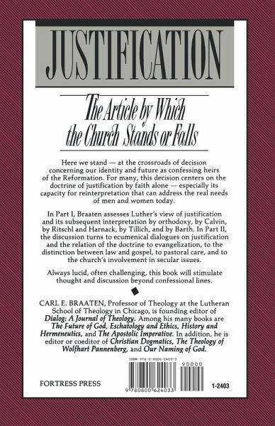 In Part I, Braaten assesses Luther's view of justification and its subsequent interpretation by orthodoxy, by Calvin, by Ritschl and Harnack, by Tillich, and by Barth. In Part II, the discussion turns to ecumenical dialogues on justification and the relation of the doctrine to evangelization, to the distinction between law and gospel, to pastoral care, and to the church's involvement in secular issues. Always lucid, often challenging, this book will stimulate thought and discussion beyond confessional lines.