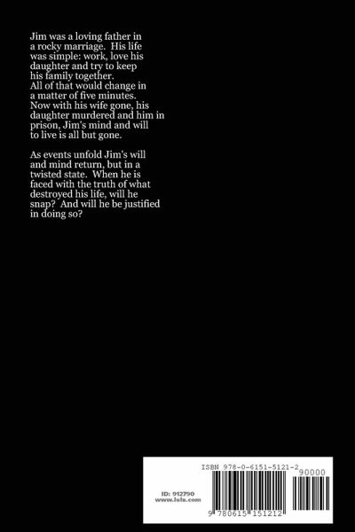 Jim was a loving father in a rocky marriage. His life was simple: work, love his daughter and try to keep his family together. All of that would change in a matter of five minutes. Now with his wife gone, his daughter murdered and him in prison, Jim's mind and will to live is all but gone. As events unfold Jim's will and mind return, but in a twisted state. When he is faced with the truth of what destroyed his life, will he snap? And will he be justified in doing so?