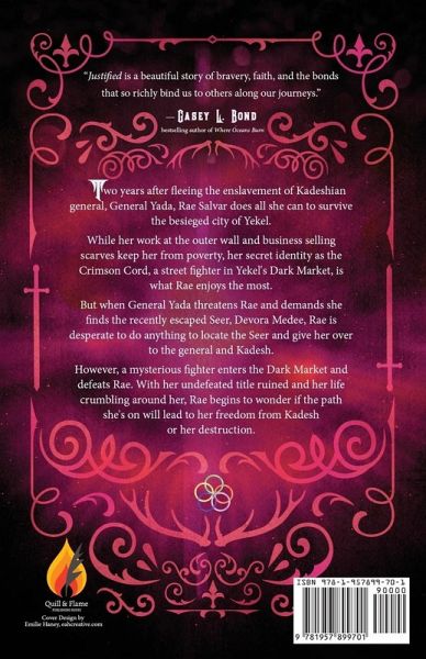 Two years after fleeing the enslavement of Kadeshian general, General Yada, Rae Salvar does all she can to survive the besieged city of Yekel. While her work at the outer wall and business selling scarves keep her from poverty, her secret identity as the Crimson Cord, a street fighter in Yekel's Dark Market, is what Rae enjoys the most. But when General Yada threatens Rae and demands she finds the recently escaped Seer, Devora Medee, Rae is desperate to do anything to locate the Seer and give her over to the general and Kadesh. However, a mysterious fighter enters the Dark Market and defeats Rae. With her undefeated title ruined and her life crumbling around her, Rae begins to wonder if the path she's on will lead to her freedom from Kadesh or her destruction.
