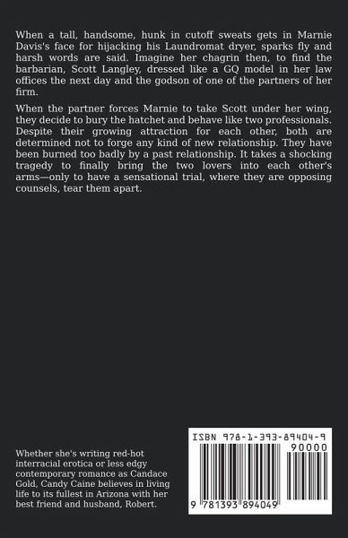 When a tall, handsome, hunk in cutoff sweats gets in Marnie Davis's face for hijacking his Laundromat dryer, sparks fly and harsh words are said. Imagine her chagrin then, to find the barbarian, Scott Langley, dressed like a GQ model in her law offices the next day and the godson of one of the partners of her firm. When the partner forces Marnie to take Scott under her wing, they decide to bury the hatchet and behave like two professionals. Despite their growing attraction for each other, both are determined not to forge any kind of new relationship. They have been burned too badly by a past relationship. It takes a shocking tragedy to finally bring the two lovers into each other's arms-only to have a sensational trial, where they are opposing counsels, tear them apart.