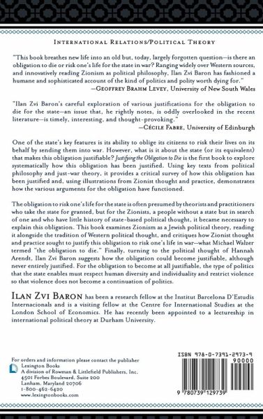 Justifying the Obligation to Die provides a critical survey covering classical, medieval, and modern political thinking on how the state or sovereign may justifiably oblige members of the community to risk their lives on its behalf by being sent into war, and it uses Zionism to illustrate how this obligation has been argued in practice. The author then turns to the political thought of Hannah Arendt in order to argue how the obligation could become justifiable.