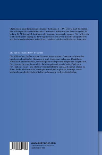 Sowohl die Regierung Kaiser Justinians I. (527-565) als auch die spätantike/frühbyzantinische Armee sind seit einigen Jahren intensiv diskutierte Themen gerade der althistorischen Forschung. Dabei wird allerdings die Militärpolitik aus der Analyse der kaiserlichen Regierung weitgehend ausgeblendet. Die Rolle des Kaisers als Oberkommandierender der Armee findet kaum Beachtung, obgleich Justinian in einem seine Vorgänger weit übertreffenden Maße Kriege geführt hat. Der Kaiser gilt als akribischer Organisator der zivilen Verwaltung, aber militärisch eher als Laie. Hier wird nun erstmals umfassend die These argumentiert, dass Justinian militärischen Sachfragen insgesamt deutlich mehr Aufmerksamkeit gewidmet hat als bislang angenommen. Von Beginn an betrieb er eine aktive Militärpolitik, die freilich zunehmend politischen und finanziellen Kontigenzen ausgesetzt war und schließlich scheiterte. An der Schnittstelle von Alter Geschichte, Byzantinistik und Militärgeschichte angesiedelt, stellt die Studie somit einen Beitrag zu der vieldiskutierten Frage nach den konkreten Entscheidungsabläufen und der Intentionalität des kaiserlichen Handelns im frühen Byzanz dar.
