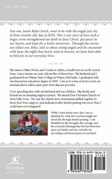 Our son, Justin Ryker Swick, went to be with the angels just shy of three months old, due to SIDS. This is our story of how such a tragic event strengthened our faith in Jesus Christ, put peace in our hearts, and hope for a better tomorrow. Through the stories our oldest son Riley, told us about seeing angels and his encounter with Jesus the night that Justin went to Heaven, we have been able to find joy in our every day lives.