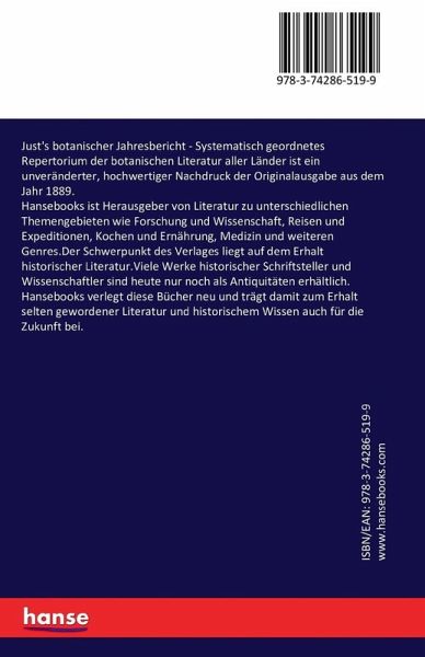 Just's botanischer jahresbericht - Systematisch geordnetes Repertorium der botanischen Literatur aller Länder ist ein unveränderter, hochwertiger Nachdruck der Originalausgabe aus dem Jahr 1889.