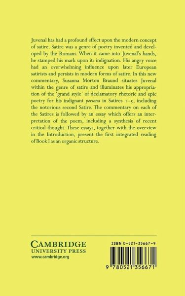 This volume presents a new commentary on the first book of satires of the Roman satirist Juvenal. Susanna Morton Braund situates Juvenal within the genre of satire and demonstrates his originality in creating an angry character who declaims in the 'grand style'. The essays on each poem present the first integrated reading of these Satires as an organic structure.