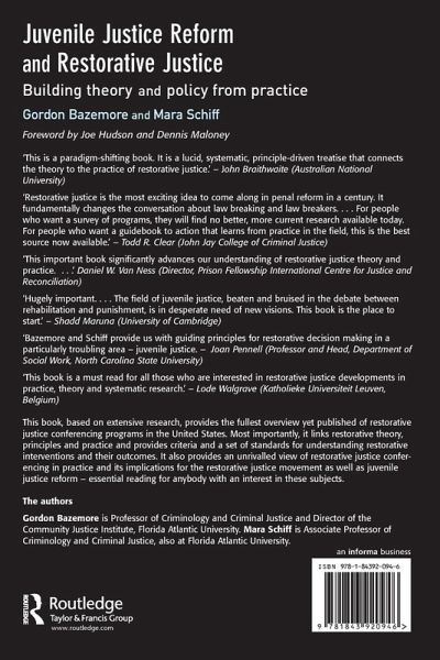 Gordon Bazemore is Professor of Criminology, and Chair of the School of Criminology and Criminal Justice, at Florida Atlantic University. Mara Schiff is Associate Professor of Criminology at Florida Atlantic University.