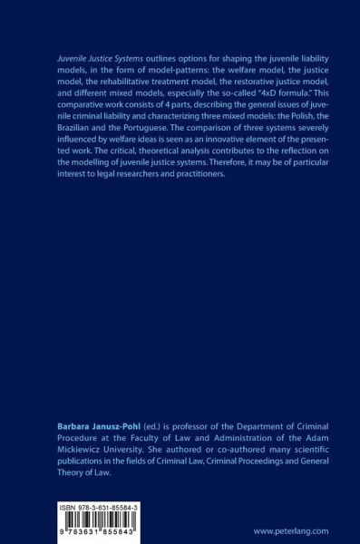 Juvenile Justice Systems outlines options for shaping the juvenile liability models, in the form of model-patterns: the welfare model, the justice model, the rehabilitative treatment model, the restorative justice model, and different mixed models, especially the so-called "4xD formula." This comparative work consists of 4 parts, describing the general issues of juvenile criminal liability and characterizing three mixed models: the Polish, the Brazilian and the Portuguese. The comparison of three systems severely influenced by welfare ideas is seen as an innovative element of the presented work. The critical, theoretical analysis contributes to the reflection on the modelling of juvenile justice systems. Therefore, it may be of particular interest to legal researchers and practitioners.
