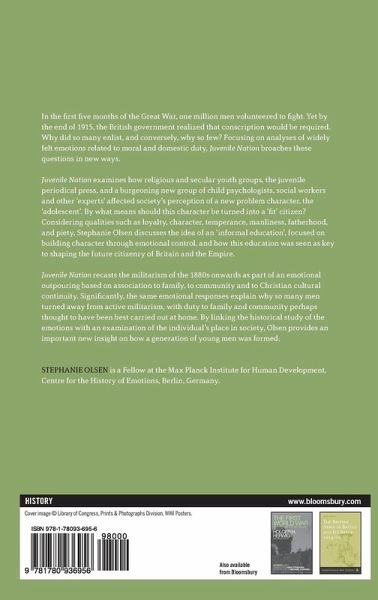 In the first five months of the Great War, one million men volunteered to fight. Yet by the end of 1915, the British government realized that conscription would be required. Why did so many enlist, and conversely, why so few? Focusing on analyses of widely felt emotions related to moral and domestic duty, Juvenile Nation broaches these questions in new ways. Juvenile Nation examines how religious and secular youth groups, the juvenile periodical press, and a burgeoning new group of child psychologists, social workers and other 'experts' affected society's perception of a new problem character, the 'adolescent'. By what means should this character be turned into a 'fit' citizen? Considering qualities such as loyalty, character, temperance, manliness, fatherhood, and piety, Stephanie Olsen discusses the idea of an 'informal education', focused on building character through emotional control, and how this education was seen as key to shaping the future citizenry of Britain and the Empire. Juvenile Nation recasts the militarism of the 1880s onwards as part of an emotional outpouring based on association to family, to community and to Christian cultural continuity. Significantly, the same emotional responses explain why so many men turned away from active militarism, with duty to family and community perhaps thought to have been best carried out at home. By linking the historical study of the emotions with an examination of the individual's place in society, Olsen provides an important new insight on how a generation of young men was formed.