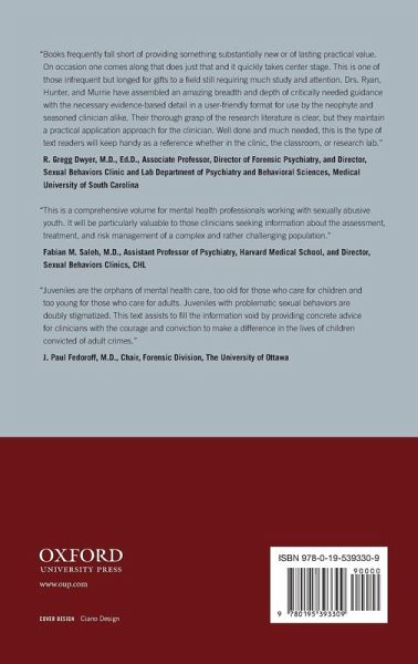 * Chapter 1 Changing Perceptions of Juvenile Sexual Offending in Society and the Legal System * Eileen P. Ryan * Chapter 2 Placing Sexual Behavior Problems in Context: What is "Normal " Sexual Behavior among Juveniles? * Daniel C. Murrie * Chapter 3 Patterns of Sexual Offending in Juveniles and Risk Factors * John A. Hunter * Chapter 4 Psychopathology in Juvenile Offenders and Sexually Offending Juveniles * Eileen P. Ryan * Chapter 5 Forensic Evaluation versus Clinical Evaluation: How Do They Differ? * Eileen P. Ryan * Chapter 6 Interviewing, Evaluation, and Risk Assessment of Sexually Offending Youth * Eileen P. Ryan * Chapter 7 Assessment Instruments for Juveniles Who Sexually Offend * Daniel C. Murrie * Chapter 8 Management and Treatment Methods * John A. Hunter * Chapter 9 Biological and Pharmacologic Treatment of Sexually Aberrant Behavior * Eileen P. Ryan