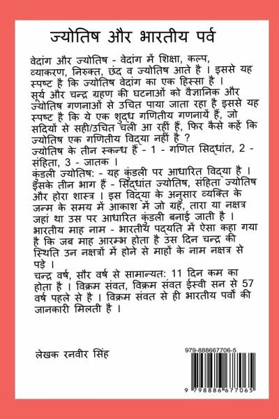 Vedanga and Jyotish - Shiksha (Education), Kalpa, Vyakaran (Grammar), Nirukta, Chhand (verses) and Jyotish (astrology) come in Vedanga. From this it is clear that Jyotish (astrology) is a part of Vedanga. The events of solar and lunar eclipses have been found to be justified by scientific and astrological calculations, from this it is clear that these are pure mathematical calculations, which have been correct/proper for centuries, then how to say that Jyotish (astrology) is not a mathematical science? Jyotish (Astrology) has three wings - 1 - Mathematics principles, 2 - Samhita, 3 - Jataka. Kundli Astrology: - This is the science based on Kundli. It has three parts - Siddhant Jyotish, Samhita Jyotish and Hora Shastra. According to this knowledge, the horoscope is made based on the planet, star or Nakshtra (constellation) where were in the sky at the time of person's birth. Indian Month Name - In Indian tradition, it is said that when the month begins, due to the position of the Moon in the following Nakshtra (constellations), the names of the months fall from the Nakshtra (constellations): - The lunar year is usually 11 days shorter than the solar year. Vikram Samvat dates back to 57 years before AD. Information about Indian festivals is available from Vikram Samvat itself.