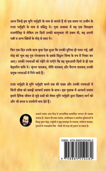 Aaj jinhe hum muni Bhartrahari ke naam se jaante hain wo ek samay par Ujjain ke raja Bhartrahari ke naam se prasiddh the. Yuva avastha me veh ek vilakshan raajnitigya the lekin un dino unki kaamukta bhi prabal thi, veh apni patni va anya striyon ke moh se grast the. Fir ek din unke saath kuch aesa hua ki unki duniya hi palat gai, stree moh ko bhool veh Guru Gorakhnaath ke sabse vidwaan shishy ke roop me nikhar kar aae. Unki rachnaao ko padhenge to paenge ki veh shuruati dino se hi ek behetareen kavi the. Shringaar Shatkam, Niti Shatkam aur Vairagya Shatkam unki pramukh rachnaao me gine jaate hain. Raja Bhartrahari se Muni Bhartrahari banne tak ki yaatra aur unki rachnaaon me chhipi seekh ko samjhein Acharya Prashant ke saath. Is pustak me Acharya Prashant humaare dainik jeevan se jude prashno ko lekar Muni Bhartrahari dwaara dikhaae maarg ko aur bhi saral va upyogi bana dete hain.