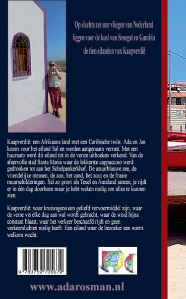 Kaapverdië: een Afrikaans land met een Caribische twist. Ada en Jan kozen voor het eiland Sal en werden aangenaam verrast. Met een huurauto werd dit eiland tot in de verste uithoeken verkend. Van de sfeervolle stad Santa Maria waar de lekkerste cappuccino werd gedronken tot aan het Schelpenkerkhof. De azuurblauwe zee, de vriendelijke mensen, de zon, het zand, het zout en de fraaie muurschilderingen. Sal zo groot als Texel en Ameland samen; je rijdt er in één dag doorheen maar je hebt weken nodig om alles te kunnen zien. Kaapverdië: waar kruiwagens een geliefd vervoermiddel zijn, waar de verse vis elke dag aan wal wordt gebracht, waar de wind bijna constant blaast, waar het het verkeer beschaafd rijdt en geen verkeerslichten nodig heeft. Een eiland waar de bezoeker een warm welkom wacht. Ada Rosman-Kleinjan reist samen met haar echtgenoot al decennia over de wereld. Inmiddels heeft ze ruim 60 landen bezocht en tientallen reisboeken op haar naam staan.