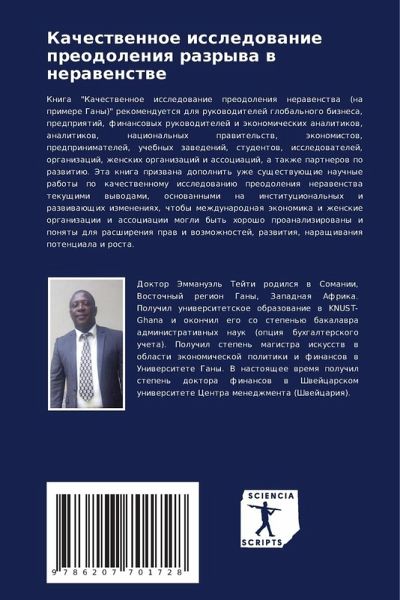 Kniga "Kachestwennoe issledowanie preodoleniq nerawenstwa (na primere Gany)" rekomenduetsq dlq rukowoditelej global'nogo biznesa, predpriqtij, finansowyh rukowoditelej i äkonomicheskih analitikow, analitikow, nacional'nyh prawitel'stw, äkonomistow, predprinimatelej, uchebnyh zawedenij, studentow, issledowatelej, organizacij, zhenskih organizacij i associacij, a takzhe partnerow po razwitiü. Jeta kniga prizwana dopolnit' uzhe suschestwuüschie nauchnye raboty po kachestwennomu issledowaniü preodoleniq nerawenstwa tekuschimi wywodami, osnowannymi na institucional'nyh i razwiwaüschih izmeneniqh, chtoby mezhdunarodnaq äkonomika i zhenskie organizacii i associacii mogli byt' horosho proanalizirowany i ponqty dlq rasshireniq praw i wozmozhnostej, razwitiq, naraschiwaniq potenciala i rosta.