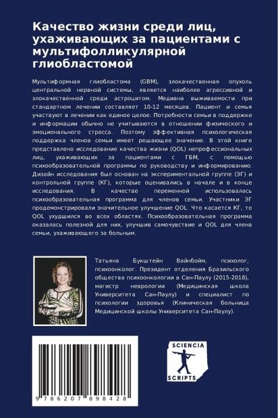 Mul'tiformnaq glioblastoma (GBM), zlokachestwennaq opuhol' central'noj nerwnoj sistemy, qwlqetsq naibolee agressiwnoj i zlokachestwennoj sredi astrocitom. Mediana wyzhiwaemosti pri standartnom lechenii sostawlqet 10-12 mesqcew. Pacient i sem'q uchastwuüt w lechenii kak edinoe celoe. Potrebnosti sem'i w podderzhke i informacii obychno ne uchitywaütsq w otnoshenii fizicheskogo i ämocional'nogo stressa. Poätomu äffektiwnaq psihologicheskaq podderzhka chlenow sem'i imeet reshaüschee znachenie. V ätoj knige predstawleno issledowanie kachestwa zhizni (QOL) neprofessional'nyh lic, uhazhiwaüschih za pacientami s GBM, s pomosch'ü psihoobrazowatel'noj programmy po rukowodstwu i informirowaniü. Dizajn issledowaniq byl osnowan na äxperimental'noj gruppe (JeG) i kontrol'noj gruppe (KG), kotorye oceniwalis' w nachale i w konce issledowaniq. V kachestwe peremennoj ispol'zowalas' psihoobrazowatel'naq programma dlq chlenow sem'i. Uchastniki JeG prodemonstrirowali znachitel'noe uluchshenie QOL. Chto kasaetsq KG, to QOL uhudshilsq wo wseh oblastqh. Psihoobrazowatel'naq programma okazalas' poleznoj dlq nih, uluchshiw samochuwstwie i QOL dlq chlena sem'i, uhazhiwaüschego za bol'nym.