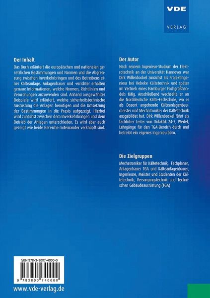 Das Buch erläutert die europäischen und nationalen gesetzlichen Bestimmungen und Normen und die Abgrenzung zwischen Inverkehrbringen und Betreiben einer Kälteanlage. Anlagenbauer und -errichter erhalten genaue Informationen, welche Normen, Richtlinien und Verordnungen anzuwenden sind. Anhand ausgewählter Beispiele wird erläutert, welche sicherheitstechnische Ausrüstung die Anlagen benötigen und die Umsetzung der Bestimmungen in die Praxis aufgezeigt. Hierbei wird zunächst zwischen dem Inverkehrbringen und dem Betrieb der Anlagen unterschieden. Es wird aber auch gezeigt, wie beide Bereiche miteinander verknüpft sind.