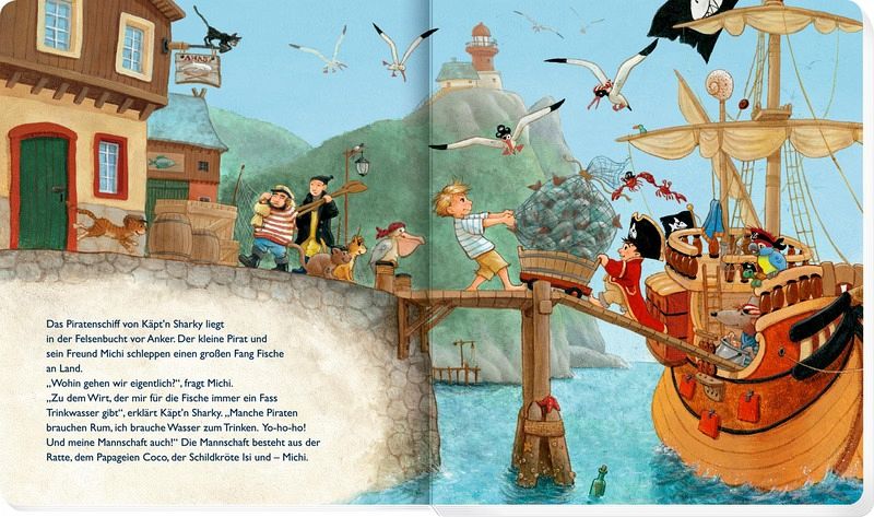 Jetzt im Pappbilderbuch - das zweite Abenteuer von Michi und Käpt'n Sharky behutsam gekürzt und vereinfacht für alle kleinen Piratenfans!