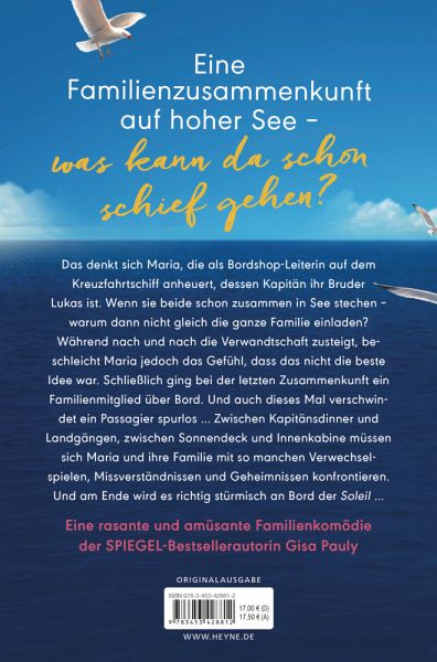 Das denkt sich Maria, als sie als Bordshop-Leiterin auf dem Kreuzfahrtschiff anheuert, dessen Kapitän ihr Bruder Lukas ist. Wenn sie beide schon zusammen in See stechen - warum dann nicht gleich die ganze Familie einladen? Während nach und nach die Verwandtschaft zusteigt, beschleicht Maria jedoch das Gefühl, dass das nicht die beste Idee war. Schließlich ging bei der letzten Zusammenkunft ein Familienmitglied über Bord. Und auch dieses Mal verschwindet ein Passagier spurlos ... Zwischen Kapitänsdinner und Landgängen, zwischen Sonnendeck und Innenkabine müssen sich Maria und ihre Familie mit so manchen Verwechselspielen, Missverständnissen und Geheimnissen konfrontieren. Und am Ende wird es richtig stürmisch an Bord der "Soleil" ...