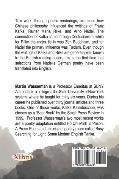 This work, through poetic renderings, examines how Chinese philosophy influenced the writings of Franz Kafka, Rainer Maria Rilke, and Arno Nadel. The connection for Kafka came through Confucianism, while for Rilke the major tie-in was Zen Buddhism, and for Nadel the primary influence was Taoism. Even though the writings of Kafka and Rilke are generally well known to the English-reading public, this is the first time that selections from Nadels German poetry have been translated into English.