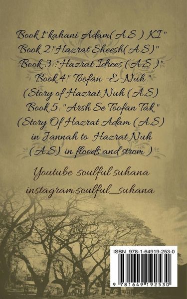 Seema suhana is the proud owner of the follwing books 1. kahani Adam (A.S) ki. 2. Hazrat Sheesh (A.S) 3. Aknookh Yani Hazrat Idrees (A.S) 4 :""TOOFAN -E-NUH "" (STORY OF HAZRAT NUH (A.S)"" 5 :""ARSH SE TOOFAN TAK "" (STORY OF HAZRAT ADAM (A.S) IN JANNAH TO HAZRAT NUH (A.S) IN FLOODS AND STROM ) All books are available on e-sites Amazon,snapdeal,flipkart. these books tells the life and incidents of our beloved prophet which narrates the life story of our beloved Prophets BOOK DESCRIPTION Allah ne Hazrat Adam (A.S) ko paida farmaya aur Amma Hawwa (A.S) ko Hazrat Adam (A.S) ke wajood se aur zameen mai insaan ko abaad kiya . Hazrat Adam (A.S) aur Amma Hawwa (A.S) sabhi insaano ke maa-baap jaane jaate hai. iss kitaab mai aapko unki zindagi ki jaankaari milegi. iss kitaab mai aapko Iblees ka Shaitaan banne ka safar bhi maloom hoga . maine apni poori koshish se yeh kitaab likhi hai jismai Hazrat Adam (A.S) ke wafaat tak ka safar hai.