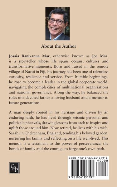 Josaia (Joe) Banivanua Mar, otherwise known as Joe Mar, is a storyteller whose life spans oceans, cultures and transformative moments. Born and raised in the remote village of Naroi in Fiji, his journey has been one of relentless curiosity, resilience and service. From humble beginnings, he rose to become a leader in the global corporate world, navigating the complexities of multinational organisations and national governance. Along the way, he balanced the roles of a devoted father, a loving husband and a mentor to future generations.A man deeply rooted in his heritage and driven by an enduring faith, he has lived through seismic personal and political upheavals, drawing lessons from each to inspire and uplift those around him. Now retired, he lives with his wife, Sarah, in Cheltenham, England, tending his beloved garden, nurturing his family and reflecting on a life well-lived. This memoir is a testament to the power of perseverance, the bonds of family and the courage to forge one's own path.