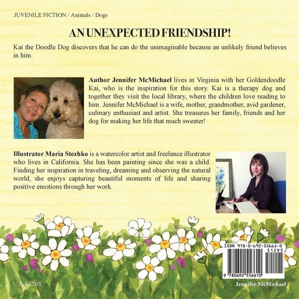 In this delightful story, Kai the Doodle dog discovers that he can do the unthinkable because an unlikely friend believes in him. He first encounters this new companion when his favorite ball rolls under a bush and he tries to retrieve it. This chance meeting turns out to be the beginning of an unexpected and unique friendship between a dog and a dragonfly named Didi. Didi's frightening encounter draws you into this extraordinary relationship that once proves dogs do make best friends. This tale will capture your heart; by the author and illustrator team of Jennifer McMichael and Maria Stezhko.