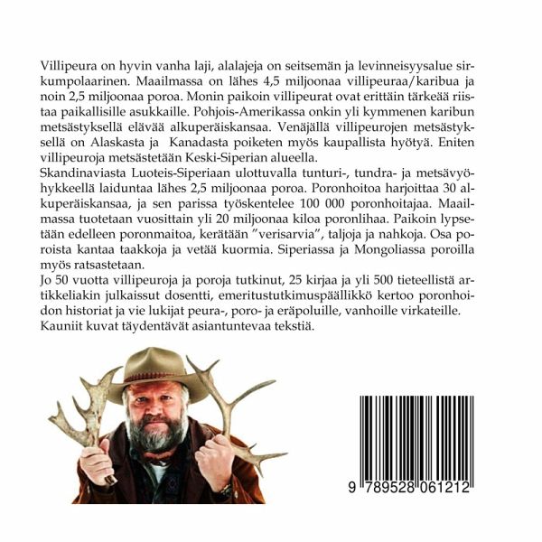 Kirja kertoo maailman villipeuroista ja poroista. Villipeura on hyvin vanha laji, alalajeja on seitsemän ja levinneisyys alue sirkumpolaari-nen. Maailmassa lähes 4,5 miljoonaa villipeuraa ja karibua. Poroja on noin 2,5 miljoonaa. Monin paikoin villipeurat ovat tärkeää riistaa. Poronhoitoa harjoittaa noin 30 alkuperäiskansaa, ja sen parissa työskentelee 100 000 poronhoitajaa. Maailmassa tuotetaan vuosittain yli 20 miljoonaa kiloa poronlihaa. Paikoin poroja edelleen lypsetään, kerätään sarvia, taljoja ja nahkoja.