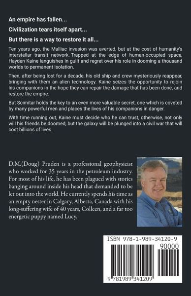 An empire has fallen, and civilization tears itself apart. But there is a way to restore it all. Ten years ago, the Malliac invasion was averted, but at the cost of humanity's interstellar transit network. Trapped at the edge of human-occupied space, Hayden Kaine languishes in guilt and regret over his role in dooming a thousand worlds to permanent isolation. Then, after being lost for a decade, his old ship and crew mysteriously reappear, bringing with them an alien technology. Kaine seizes the opportunity to rejoin his companions in the hope they can repair the damage that has been done and restore the empire. But Scimitar holds the key to an even more valuable secret, one which is coveted by many powerful men and places the lives of his companions in danger. With time running out, Kaine must decide who he can trust, otherwise, not only will his friends be doomed, but the galaxy will be plunged into a civil war that will cost billions of lives.