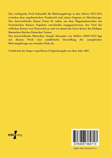 Der österreichische Historiker Joseph Alexander von Helfert (1820-1910) legt mit diesem Werk eine ausführliche Darstellung der europäischen Befreiungskriege aus zeitnaher Sicht ab.