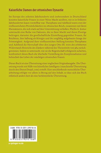Im Europa des zehnten Jahrhunderts und insbesondere in Deutschland konnten kaiserliche Frauen in einer Weise Macht ausüben, wie es in früheren Jahrhunderten kaum vorstellbar war. Theophanu und Adelheid waren zwei der einflussreichsten Persönlichkeiten im ottonischen Reich, zusammen mit ihren Ehemännern, die sich stark auf ihre Unterstützung verließen. Phyllis G. Jestice untersucht eine Reihe von Faktoren, die zu ihrer Macht und ihrem Prestige beitrugen, darunter die gesellschaftliche Einstellung gegenüber Frauen, ihr Reichtum, ihre Salbung als Königin und ihr sorgfältig aufgebautes Image der Frömmigkeit. Aufgrund ihrer einflussreichen Stellung konnten Theophanu und Adelheid die Herrschaft über den jungen Otto III. trotz des erbitterten Widerstands Heinrichs des Zänkers während des Thronstreits von 984 zurückgewinnen. Indem es untersucht, wie sie die Regentschaft erfolgreich sicherten, konfrontiert dieses Buch die überholte Vorstellung des Exzeptionalismus und beleuchtet das Lebender mächtigen ottonischen Frauen.