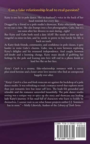 Can a fake relationship lead to real passion? Kaity is too fat to pole dance. Her ex-husband's voice in the back of her head reminds her every day. Dragged by a friend to a pole studio's showcase, Kaity reluctantly agrees to try out a class. She also bumps into a hot photographer, Gabe, but it's too soon after her divorce to start dating...right? But Kaity and Gabe both need a date ASAP. She needs to show up her vengeful ex-sister-in-law, and he needs to prove to his family his life is back on track. As Kaity finds friends, community, and confidence in pole classes, it gets harder to resist Gabe's charms. Gabe, too, is torn between exploring Kaity's delights and his treasured independence. And caught between self-doubt and a looming change, Kaity must decide if grabbing her feelings by the pole and leaning into love will end in a photo finish or land her flat on her face. Kaity's Catch is a steamy, fake-relationship romance with a curvy, plus-sized heroine and a loner artist love interest who find an unexpected happily ever after.