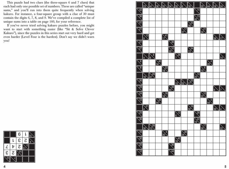 Kakuro is a puzzle type in which sums are given and solvers must deduce the numbers in the individual boxes. This title is suitable for hardcore kakuro devotees.