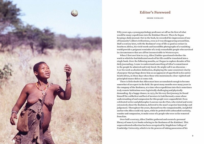 Spanning fifteen years of expeditions, this fully illustrated memoir takes the reader into the heart of the Kalahari Desert and records, from an outsider's perspective, the vanishing hunter-gatherer culture of the San people (or "Bushmen") In 1975, a young South African psychology professor set off on the first of what would be many expeditions into the Kalahari Desert. There he began keeping a daily journal, recording his impressions of one of humanity's oldest societies, even as it was disappearing before him. Half a century later, with the Bushmen's way of life now mostly extinct, Allen Zimbler's vivid words and photography provide a powerful depiction of a people who could survive in the harshest of conditions. Theirs was an deeply egalitarian, cooperative, knowledgeable and resourceful society, one in which men and women enjoyed equal standing. But Bushmen are now threatened across southern Africa with marginalization and discrimination. Since diamonds were first discovered in the Central Kalahari Reserve in the early 1980s, the Bushmen of the region have been fighting for the right to their ancestral lands. They have suffered three big clearances-their homes dismantled, their water supply destroyed-and most have been moved to resettlement camps far from the reserve and forced to abandon their traditional lifestyle as hunter-gatherers. With its tales of poison-arrow hunts, water making and bone-throwing divination, Kalahari Diaries offers a fascinating glimpse of a vanishing culture and invites the reader to consider a different, more harmonious way of living. It includes a photographic appendix of Bushman artefacts from the author's collection-of jewellery, utensils, toys and weapons, all crafted from bone, hide, eggshell, wood and seeds of the desert. It aims to raise funds to build schools for one of the last remaining traditional Bushman communities in northern Namibia. Published by Paul Holberton Publishing