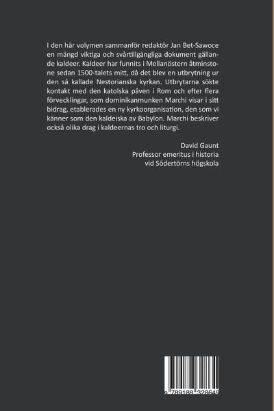 I den här volymen sammanför redaktör Jan Bet-¿awoce en mängd viktiga och svårtillgängliga dokument gällande kaldéer. Kaldéer har funnits i Mellanöstern åtminstone sedan 1500-talets mitt, då det blev en utbrytning ur den så kallade Nestorianska kyrkan. Utbrytarna sökte kontakt med den katolska påven i Rom och efter flera förvecklingar, som dominikanmunken Marchi visar i sitt bidrag, etablerades en ny kyrkoorganisation, den som vi känner som den kaldeiska av Babylon. Marchi beskriver också olika drag i kaldéernas tro och liturgi.