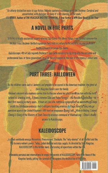 "KALEIDOSCOPE does for the CIA what THE SOPRANOS did for the mob. " MICHAEL APTED, Academy Award nominated director of COAL MINER'S DAUGHTER, JAMES BOND 007 - THE WORLD IS NOT ENOUGH, ENIGMA With Spy Game: The Aiken Trilogy, award-winning novelist and screenwriter Michael Frost Beckner thrilled espionage fans with his return to the world of his classic Robert Redford/Brad Pitt movie thriller Spy Game. Prepare yourself for Michael Frost Beckner's boldest experiment in espionage as Kaleidoscope expands the Spy Game universe with a multi-part saga of three generations of Kingstons-a CIA family trapped in the web of the Agency's darkest secret. "First-class spy novels with a smart, gritty atmosphere." - CHARLES CUMMING , New York Times & Sunday Times Best-selling Author of KENNEDY 35 and BOX 88 KALEIDOSCOPE Since the 20th century, energy-its possession, production, distribution-has been the key to every nation's power. The "why-eternal" of all conflict. Today, global demand for energy outstrips resources. As directed by Silas Kingston, KALEIDOSCOPE is the hidden hand within the CIA, older than the Agency itself, overscoring all intelligence operations with deadly efficiency. PART THREE: HALLOWEEN Summer fades, the fall winds blow, the children carve Jack-o'-lanterns, assemble costumes, and prepare to be happily scared in the American tradition. While in Beijing, Colonel Cheng Li-Qiang of the Ministry of State Security assumes command of Wànhuātǒng-China's deadly answer to Kaleidoscope. "Nobody captures espionage quite like Beckner." - I.S. BERRY, Edgar Award-winning Author of THE PEACOCK AND THE SPARROW, A New Yorker & NPR Best Book of the Year With the murder of his Swiss asset, Helene Farve, Michael Kingston's descent into madness carries him to Moscow where Doris's ghost is glimpsed in her heartbreaking past and her son's shocking birth... Her ghost can be heard howling its rage between Silas and Kolya Yurenev-the Russian spymaster Kalaydoskop-in their first meeting in thirty years... And it tears at Lynn's integrity who, desperate to find a backdoor into Kaleidoscope, ruthlessly compromises an innocent code clerk inside the Azerbaijan embassy. As Silas "recruits" Paige into a counterintelligence operation against the United Kingdom's MI6 bent on vengeance; as Hal falls under the sway of Morton Drexler whose lust to destroy the Kingstons consumes him; Melody Kingston steels herself for her father's release from prison and his devious assault on Foxtail Farm. "Michael Frost Beckner is the rarest of spy novelists, a beautiful and compelling writer [with] a mastery of tradecraft and a deep understanding of how espionage really works." Joe Weisberg, former CIA Officer and Emmy winning creator of THE AMERICANS A tale of faith and betrayal, loyalty and violence, the agonies of love without truth, the secrets of KALEIDOSCOPE entangle with those of the Kingston family, pitting the survival of one against the destruction of the other.