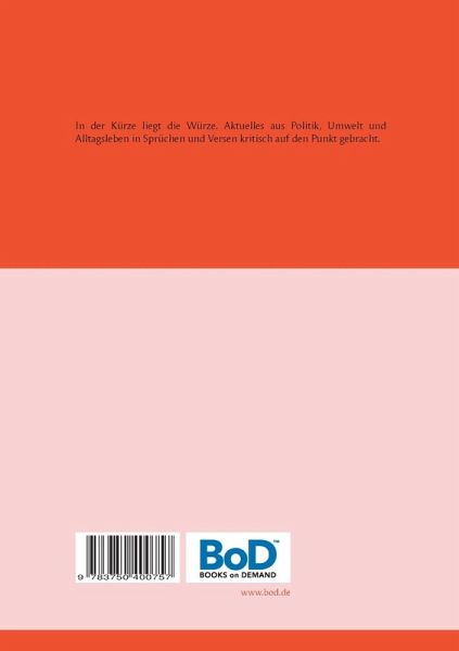 In der Kürze liegt die Würze. Aktuelles aus Politik, Umwelt und Alltagsleben in Sprüchen und Versen kritisch auf den Punkt gebracht.