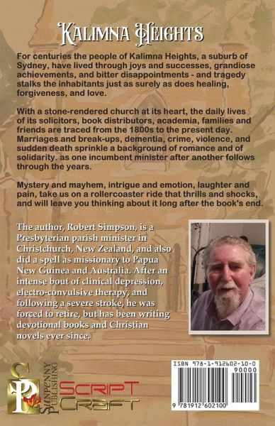For centuries the people of Kalimna Heights, a suburb of Sydney, have lived through joys and successes, grandiose achievements, and bitter disappointments - and tragedy stalks the inhabitants just as surely as does healing, forgiveness, and love. With a stone-rendered church at its heart, the daily lives of its solicitors, book distributors, academia, families and friends are traced from the 1800s to the present day. Marriages and break-ups, dementia, crime, violence, and sudden death sprinkle a background of romance and of solidarity. as one incumbent minister after another follows through the years. Mystery and mayhem, intrigue and emotion, laughter and pain, take us on a rollercoaster ride that thrills and shocks, and will leave you thinking about it long after the book's end.