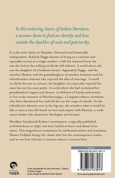 DeScriPtion It is the early 1900s in Mumbai. Educated and financially independent, Kalindi Dagge dreams of living in a casteless and equitable society as a single mother-a life far removed from the one she had in the stifling world she left behind. A world where she was the daughter of a brahmin lawyer, Appasaheb Dagge, and the casteless Shanta; and the granddaughter of another brahmin and his schoolteacher mistress who rejected the idea of marriage. A world in which she was an outcast; the daughter of a man who rejected his caste but not his caste pride. A world where she had reclaimed her grandmother's legacy and chosen, in defiance of family and society, to live as the mistress of Shivsharanappa, a Lingayat tobacco merchant, who later abandoned her and left her on the verge of suicide. As she rebuilds her identity now in the big city, she wonders what it would be like to start a new life based on love and respect with Ramrao, a trade union leader who shares her ideologies and dreams. Shridhar Vyankatesh Ketkar's masterpiece, originally published as Brahmankanya in 1930, has been hailed as brave and ahead of its times. This magnificent translation by celebrated author and translator Shanta Gokhale brings the classic alive for the contemporary reader, and we see how relevant it remains almost a century later.