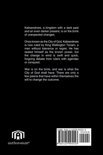 Kalisandroes, a kingdom with a dark past and an even darker present, is on the brink of unexpected changes. Once known as the City of God, Kakisandroes is now ruled by King Wellington Teriam, a man without tolerance or regret. He has sealed himself as the known power, but the change in wind is swift and quick, forgoing debate from rulers with agendas or conquest. War is on the brink, and war is what the City of God shall have. There are only a few pawns that have within themselves the will to change the outcome.