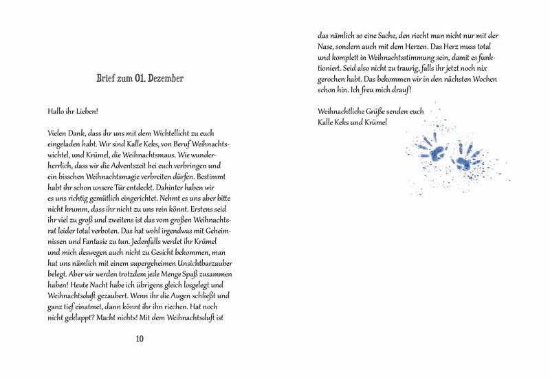 Der kleine Wichtel Kalle Keks und seine Maus Krümel sind spät dran. Kalle ist der einzige Wichtel, der noch kein Zuhause für die Adventszeit gefunden hat. Dabei ist es doch die alleroberste Regel im Weihnachtsland, dass die Wichtel helfen müssen, den Weihnachtszauber in die Menschenwelt zu bringen, indem sie bei einer Familie einziehen. Die ganze Nacht suchen sie nach einer Wichtellaterne, obwohl es draußen stürmt und schneit. Zum Glück finden sie in letzter Minute noch ein wunderbares Zuhause - und können endlich so richtig tolle Weihnachtsmagie verbreiten! 24 Vorlesegeschichten mit Wichtelbriefen, Anleitungen für Streiche, Basteleien und Vorbereitungen für jeden Tag - das Rundum-sorglos-Paket!