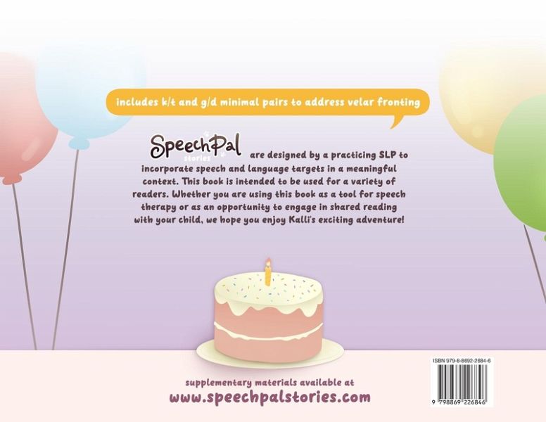 Kalli the Capybara Bakes a Cake is intended to be used for a variety of readers. Whether you are using this book as a tool for speech therapy or as an opportunity to engage in shared reading with your child, we hope that you and your child enjoy this story. This book was designed to be a tool for use in speech therapy for children with persisting phonological errors. The story incorporated initial k/t and g/d minimal pair words to address the phonological process of velar fronting. The target words are incorporated into the story in order to help establish meaning and support literacy. Explore this page for more detailed information on these topics.