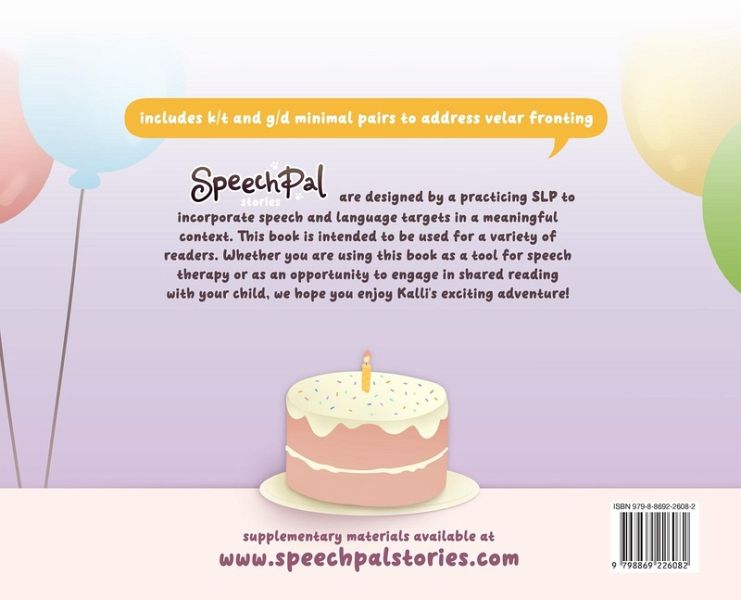 Kalli the Capybara Bakes a Cake is intended to be used for a variety of readers. Whether you are using this book as a tool for speech therapy or as an opportunity to engage in shared reading with your child, we hope that you and your child enjoy this story. This book was designed to be a tool for use in speech therapy for children with persisting phonological errors. The story incorporated initial k/t and g/d minimal pair words to address the phonological process of velar fronting. The target words are incorporated into the story in order to help establish meaning and support literacy.