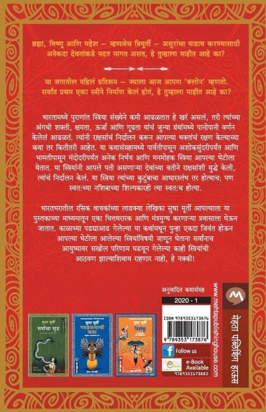 THE WOMEN IN INDIAN MYTHOLOGY MIGHT BE FEWER IN NUMBER, BUT THEIR STORIES OF STRENGTH AND MYSTERY IN THE PAGES OF ANCIENT TEXTS AND EPICS ARE MANY. THEY SLAYED DEMONS AND PROTECTED THEIR DEVOTEES FIERCELY. FROM PARVATI TO ASHOKASUNDARI AND FROM BHAMATI TO MANDODARI, THIS COLLECTION FEATURES ENCHANTING AND FEARLESS WOMEN WHO FREQUENTLY LED WARS ON BEHALF OF THE GODS, WERE THE BACKBONE OF THEIR FAMILIES AND MAKERS OF THEIR OWN DESTINIES. INDIA`S MUCH-LOVED AND BESTSELLING AUTHOR SUDHA MURTY TAKES YOU ON AN EMPOWERING JOURNEY -THROUGH THE YARNS FORGOTTEN IN TIME-ABOUNDING WITH REMARKABLE WOMEN WHO WILL REMIND YOU OF THE STRONG FEMALE INFLUENCES IN YOUR LIFE.
