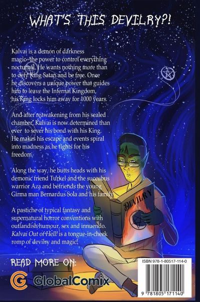 Let the cheekiness commence!! "In a dimension where time and magic flow like water, an ancient demon of the Infernal Kingdom discovered a power that would set him free from King Satan..." After 1000 years of imprisonment as punishment from attempting to defy his royal highness, King Satan, the titular incubus Kalvai returns and is more determined than ever to destroy his bond with the Infernal Kingdom and claim his freedom. And once he makes his escape to the overworld, the madness ensues and he must fight with everything he has got. Along the way, he makes friends with the mortal Bernardus Sola and his family and believes the young Girma man will be his new master. However, his long time demonic friend Turkel alongside the succubus warrior Aza attempt to capture him under the King's orders. For if he were to fail, Kalvai will be imprisoned for all eternity. The flames of battle have just stirred and will soon ignite... Will Kalvai finally break free? Kalvai Out of Hell! is a humorous pastiche of typical fantasy and supernatural horror conventions filled with camp, whimsical craziness and a tongue-in-cheek sense of humour. Capturing the same spirit of older styled, black and white comics and silly supernatural films of the 1980s. A fun read suitable for teenagers aged 16 and above, Kalvai Out of Hell! is a romp of devilry and magic!