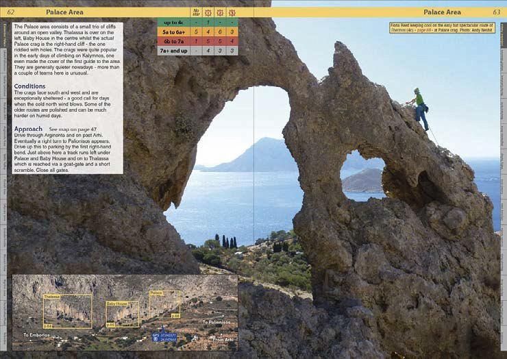 Kalymnos must be one of the world's best known sport climbing destinations and with good reason - friendly locals, glorious weather, a picturesque Aegean island setting and, of course, the truly fantastic climbing. There is approaching 3000 climbs at the last count and many of them are of impeccable quality. Climbers from all over the world now visit the place and its reputation has grown into a 'must visit' venue. There are many fantastic harder climbs but there is also a remarkable assemblage of high quality climbs in the ever-popular 4a to 6b range.