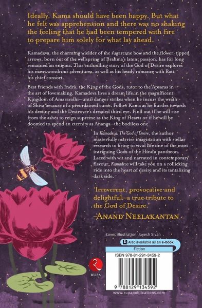 Ideally, Kama should have been happy. But what he felt was apprehension and there was no shaking the feeling that he had been tempered with fire to prepare him solely for what lay ahead. Kamadeva, the charming wielder of the sugarcane bow and the flower-tipped arrows, born out of the wellspring of Brahma's latent passion, has for long remained an enigma. This enthralling story of the God of Desire explores his many wondrous adventures, as well as his heady romance with Rati, his chief consort. Best friends with Indra, the King of the Gods, tutor to the Apsaras in the art of lovemaking, Kamadeva lives a dream life in the magnificent Kingdom of Amaravathi-until danger strikes when he incurs the wrath of Shiva because of a preordained curse. Follow Kama as he hurtles towards his destiny and the Destroyer's dreaded third eye. Find out if he will rise from the ashes to reign supreme as the King of Hearts or if he will be doomed to spend an eternity as Ananga - the bodiless one. In Kamadeva: The God of Desire, the author masterfully marries imagination with stellar research to bring to vivid life one of the most intriguing Gods of the Hindu pantheon. Laced with wit and narrated in contemporary flavour, Kamadeva will take you on a rollicking ride into the heart of desire and its tantalizing dark side. Key Features: An entertaining yet insightful look at Kamadeva, one of the most intriguing Gods of the Hindu pantheon. The narrative is a powerful combination of remarkable research and creative embellishments. Kamadeva: The God of Desireis one of the most anticipated books in the mythology genre from the bestselling author of the critically acclaimed Arjuna: Saga of a Pandava Warrior-Prince. The author's wit and vivid imagination make Kamadeva's story an extremely delightful and engaging read.